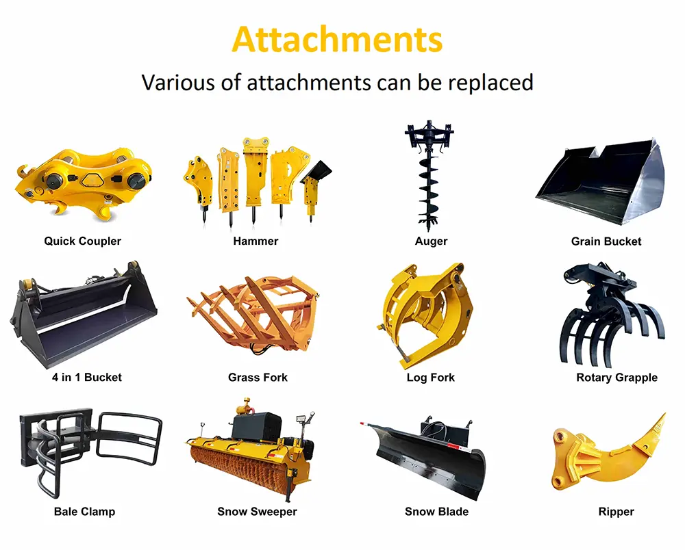 వ్యవసాయ మరియు అటవీ కార్యకలాపాలు: మల్టీఫంక్షనల్ అప్లికేషన్‌లను సాధించడానికి కలప గ్రాబర్స్ మరియు గ్రాస్ ఫోర్క్స్ వంటి ఐచ్ఛిక ఉపకరణాలను అమర్చవచ్చు.